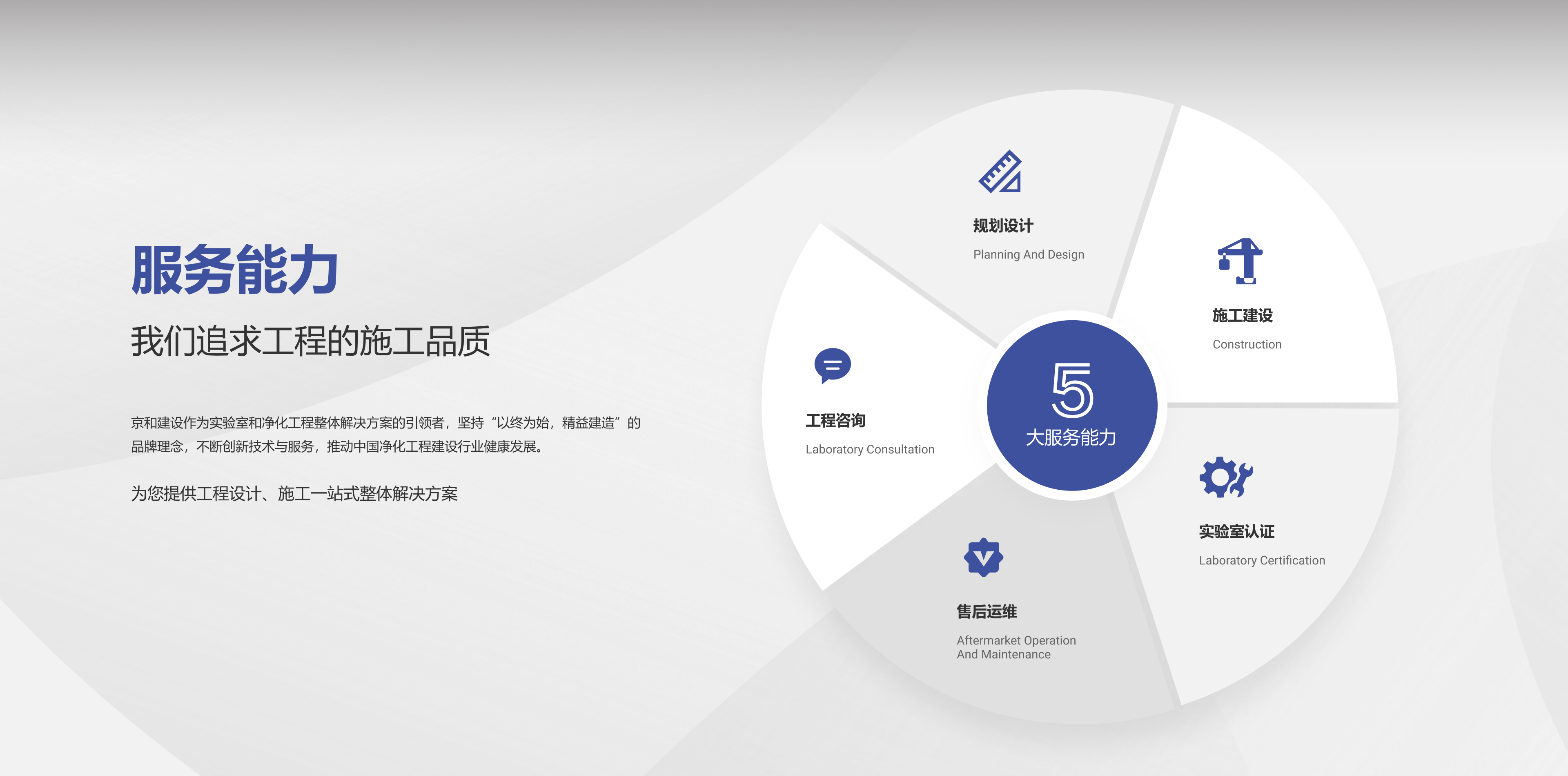 蘇州京和建設科技有限公司(簡稱“京和建設”),成立于 2018 年,位于蘇州市吳中區商圈 CBD核心位置,服務內容涵蓋工程咨詢、規(guī)劃設計、施工建設、實驗室認證和售后運維等,是一家專注服務于電子半導體、生物醫(yī)藥、化工環(huán)保、新能源等高科技領域的總包工程公司,是國內領先的高科技產業(yè)工程綜合服務商。服務客戶 300+,業(yè)務遍及長三角城市群。